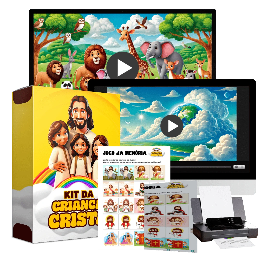 O KIT DA CRIANÇA CRISTÃ, um conjunto exclusivo de jogos e atividades pedagógicas bíblicas, desenvolvido para transformar a educação dos pequenos com os ensinamentos da Palavra de Deus.