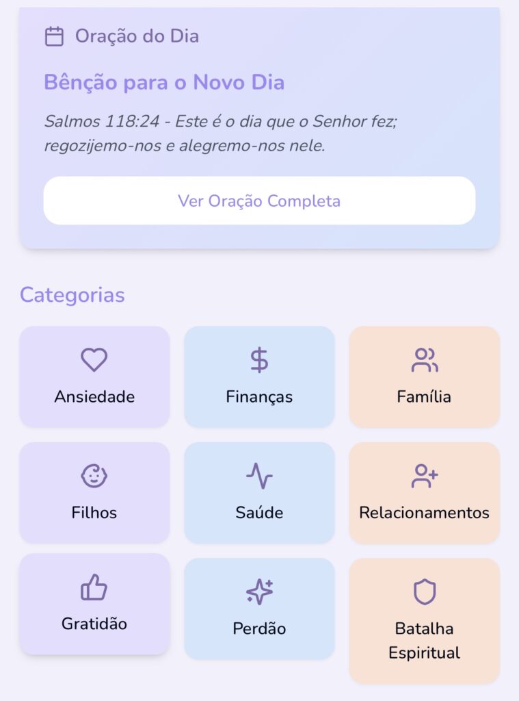 🗂️ Mais de 300 orações prontas, divididas por temas reais:
